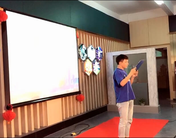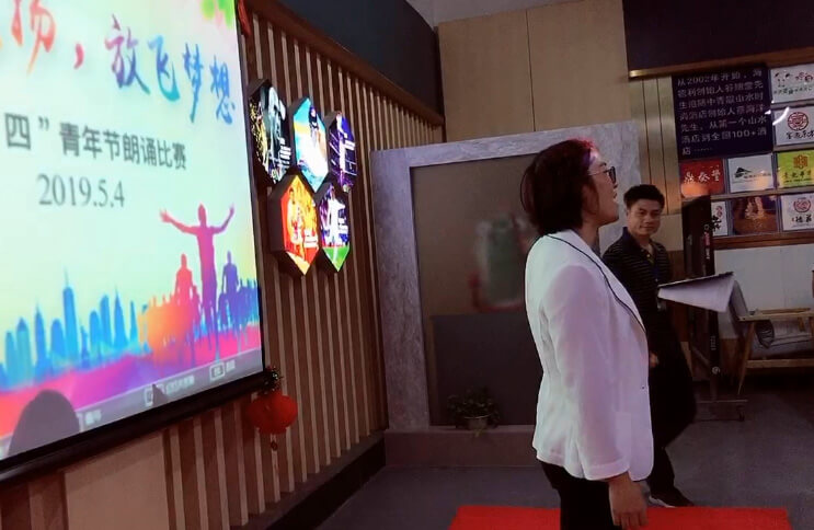 2019年(nián)5月4日。19:00一切準備就緒,精彩的朗(lǎng)讀比賽在(zài)歡快激昂的音樂聲中開幕了!一段運動進行曲,把全場的氣氛(fēn)瞬間活躍了起來。選手(shǒu)們個個摩拳擦掌,躍躍欲試。主持人(rén)開場(chǎng)後由公司最高層領導致(zhì)辭,並宣布比賽(sài)開始。並(bìng)進入第一個環節。23組選手紛紛抽簽按順序準備上台表演。第一位出場的(de)朗讀者是穀樹平,演講內容積極向上、聲音洪亮(liàng)、娓娓動聽、引(yǐn)人(rén)入勝(shèng),拉開了朗讀賽的序幕。伴隨著(zhe)陣陣的(de)掌聲的起落,很快輪到了五號選手。譚冰冰上台演講了,隻聞一段振奮人心的背景音樂一響起,便把朗讀演(yǎn)講的氣勢帶(dài)上了較高的一個層次,同時配上抑揚頓挫、高亢激昂的演(yǎn)講聲贏(yíng)得了評委及觀眾的陣(zhèn)陣掌聲。接下來的六號選手朱運強以及十號選手梁(liáng)偉海,同樣用振振(zhèn)有詞(cí)、激奮人心的演講打(dǎ)動了評委和觀眾,讓高潮(cháo)迭起,一浪高一浪,同樣贏得了(le)現場評委和觀眾的(de)陣陣掌聲。最後在(zài)23號(hào)雙人選手,吳素漫和鄧紹(shào)雲的中英雙語,完美結合的朗(lǎng)讀聲中結束了。