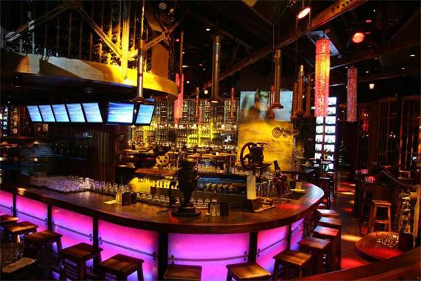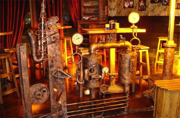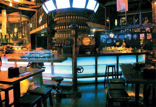 蘇荷酒(jiǔ)吧的室內設計以工業風元素作為整個空間的主元素,用鋼鐵、齒輪、玻璃、舊(jiù)原木等材料(liào),來營造厚重粗狂、奔(bēn)放自由的娛樂氛圍,同時,融合後工業時代的時尚輕鬆和維多(duō)和亞時代的繁華藝術,讓進入(rù)酒吧的顧客對藝術(shù)、自(zì)由、華麗、時尚和頹廢的(de)新感覺。