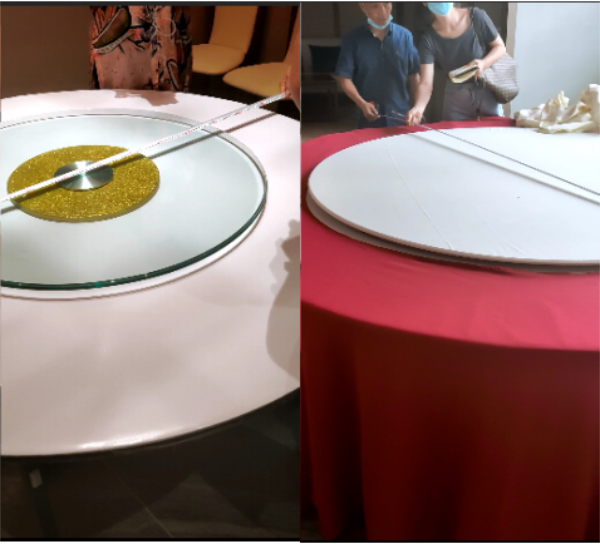 5月19日,是我第一次去潮菜王府。那次(cì)是應客戶的要求增加包房(fáng)圓桌的麵積。本著以“客戶第一”的(de)原則,我們重新測量的(de)尺(chǐ)寸,並在此基礎上對圓桌進行(háng)重新設計。(注:潮菜王府所(suǒ)有(yǒu)餐飲家具從設計到生產都是嚴格遵照圖紙)