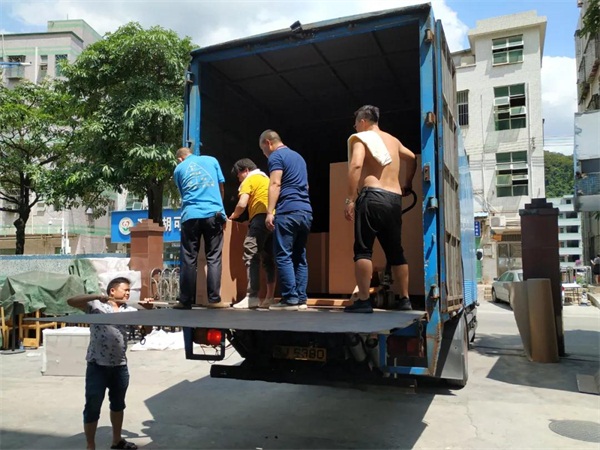 圖:海德利(lì)團隊正在為中國十大奢侈品牌-溥儀眼鏡專賣店展櫃家具裝車送(sòng)貨