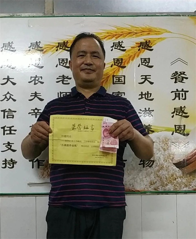14、後勤(qín)部許(xǔ)晴(qíng)廚師,生(shēng)活服務安全周到有細心。特頒發:“五星級服務金獎”