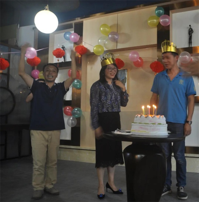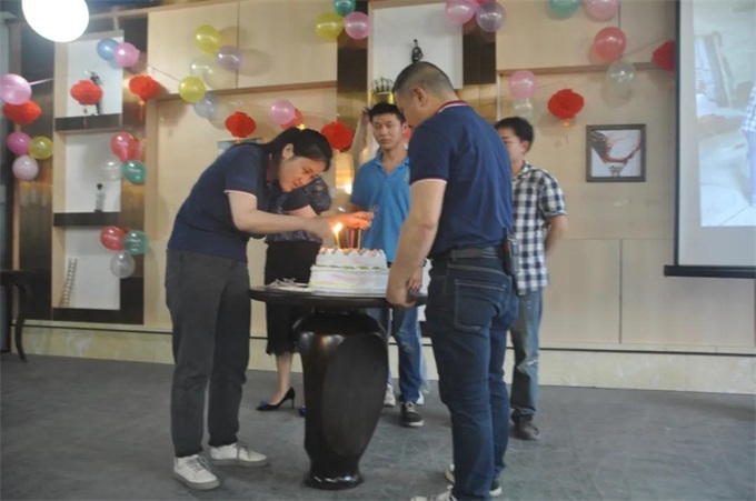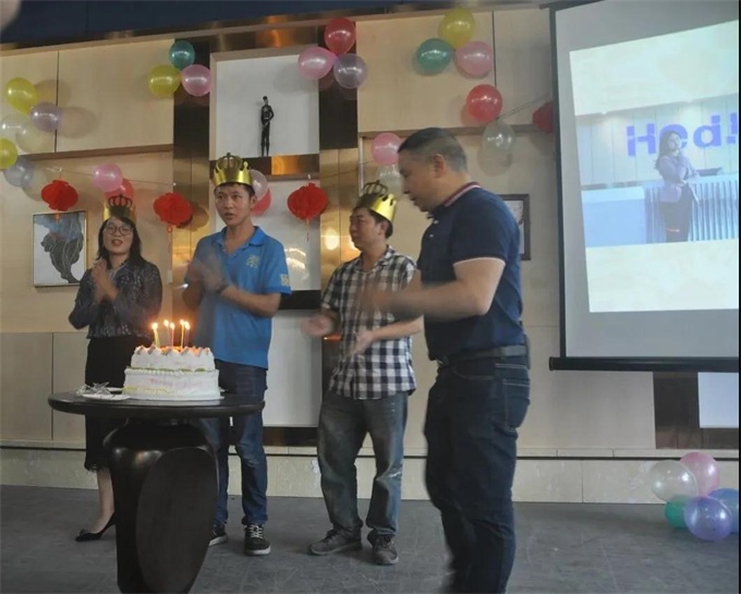 在每一項的頒獎過程中都(dōu)有精彩的點評和熱烈的掌聲響起,氣勢不斷高漲(zhǎng)。尤其是五金部在張總(zǒng)的帶動下,全(quán)體人員手搭著手齊心協力表決心的呐喊聲觸動全場,振奮人心。當現場頒發完最後一個獎項後(hòu),突然響起了歡快的生日快樂歌,同時生日蛋糕也緩緩推到了會場(chǎng)的前麵。請上了當月生日的3位壽星,穀姐、李海朵、林燕根一起圍著蛋糕許願吹蠟燭。在會(huì)場家人溫(wēn)暖的祝福聲中切開蛋糕,分蛋糕,共享生日快樂的美好時光。這是海德利人每個(gè)月都會舉辦的集體生日會,讓大家感受到大家庭不一樣(yàng)的關愛。