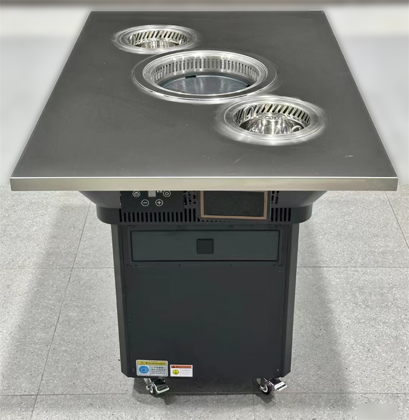 這款不鏽鋼無煙自淨(jìng)化烤涮一體桌是專(zhuān)為火(huǒ)鍋烤肉店設計的專業餐(cān)飲設備。它集烤、涮(shuàn)、烹飪於一體,采用先進的無煙淨化技術,有效減少油(yóu)煙產生(shēng),為顧客(kè)提供健康舒適的用餐環境。產品(pǐn)通過CE和UL認證,確保其符合國際安全標(biāo)準,為您的餐廳(tīng)提供可靠保(bǎo)障。同時(shí),不鏽鋼材質堅固耐用,易於清潔,能夠提升餐廳檔次和運營效率。