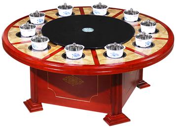 一人一鍋大理石桌(zhuō)麵圓形電動實木火鍋桌