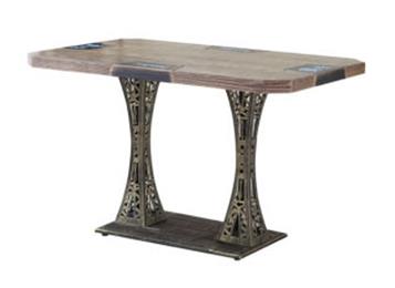 美式鄉村複古做舊實木鐵藝車(chē)輪長桌