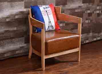 複古(gǔ)美式鄉村咖啡廳實木布(bù)藝單人(rén)沙發