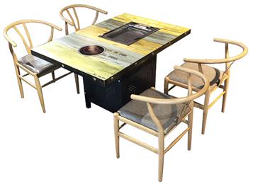 炭燒木燒烤桌 美式鄉村鐵藝實木火鍋(guō)燒(shāo)烤一(yī)體桌