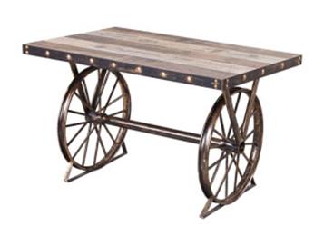 美式鄉(xiāng)村複古做(zuò)舊實木鐵藝車輪(lún)長桌