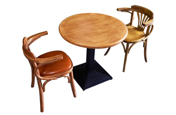 實木雙人三人小圓桌咖啡廳酒館複(fù)古做(zuò)舊鐵藝腳圓桌