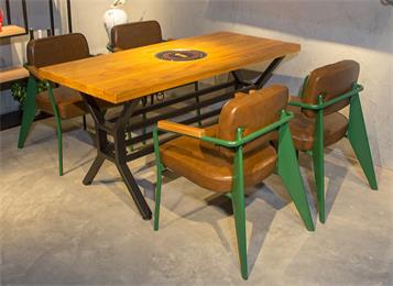 美式複古串串香烤肉店實木電磁爐火鍋桌