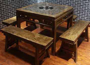仿古(gǔ)田園風實木大理石櫃(guì)式麻辣英(yīng)雄火鍋桌
